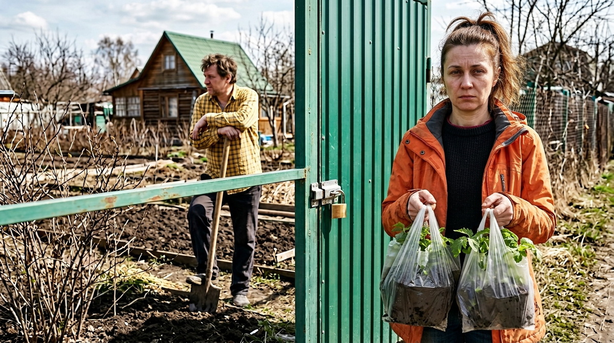 Марина рванула калитку — не поддалась. На дужке висел другой замок, латунный, новенький, с наклейкой, которую даже не содрали. А за забором, на грядке, которую она в октябре закрывала укрывным, стоял Валера — деверь — и ковырял землю незнакомой лопатой.