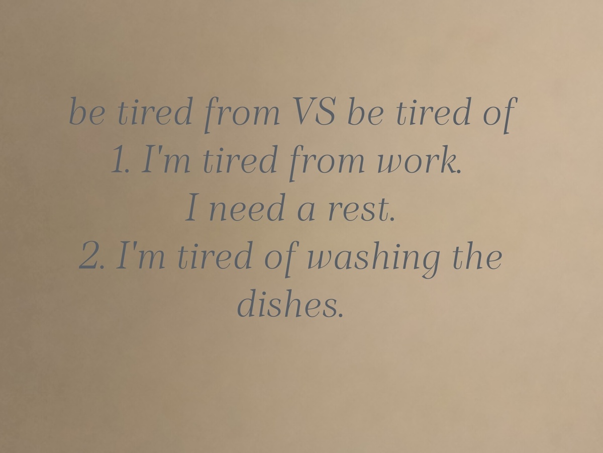 I'm tired from work. I need a rest. Я устала от работы. Мне нужно отдохнуть.