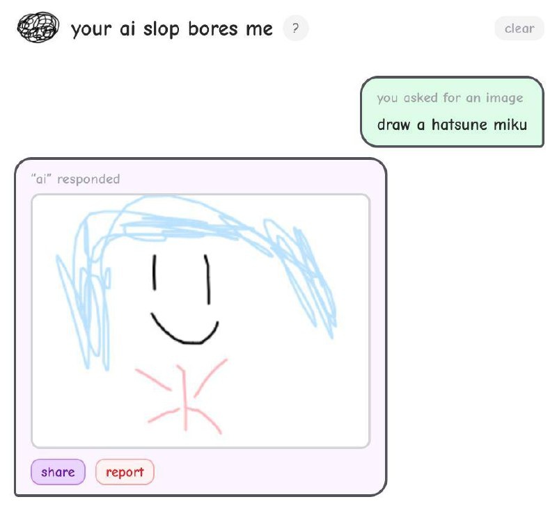 Появился сайт, где вы отвечаете людям как будто вы нейросеть. Пользователи присылают запросы, а вы должны писать ответы, придумывать идеи и даже рисовать картинки, будто вы настоящий ИИ. За закрытые диалоги дают кредиты, которые можно потратить на свои запросы другим людям, притворяющимся чат-ботами. Получается такой интернет, где все играют в нейросети. Забавно и залипательно. Пробуем — тут. 😎КиберПоток | Навигация #новость #gpt #Al #ИИ #КП