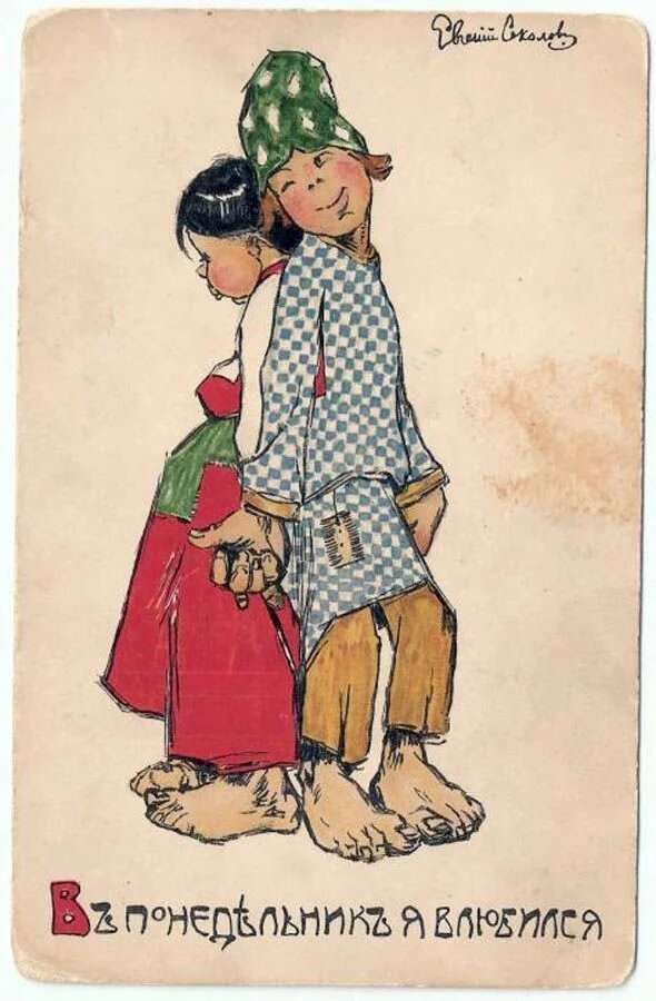 Работы Евгения Гавриловича Соколова - настоящий маленький шедевр книжной графики начала XX века. Я собрал информацию о художнике и самой серии, которой с вами делюсь. Евгений Гаврилович был не просто иллюстратор открыток, а фигура с интересной биографией, вплетённой в культурную жизнь Москвы рубежа веков. Родившись в семье, близкой к известным текстильным фабрикантам и меценатам Поляковым,мальчик рос в атмосфере, насыщенной искусством.