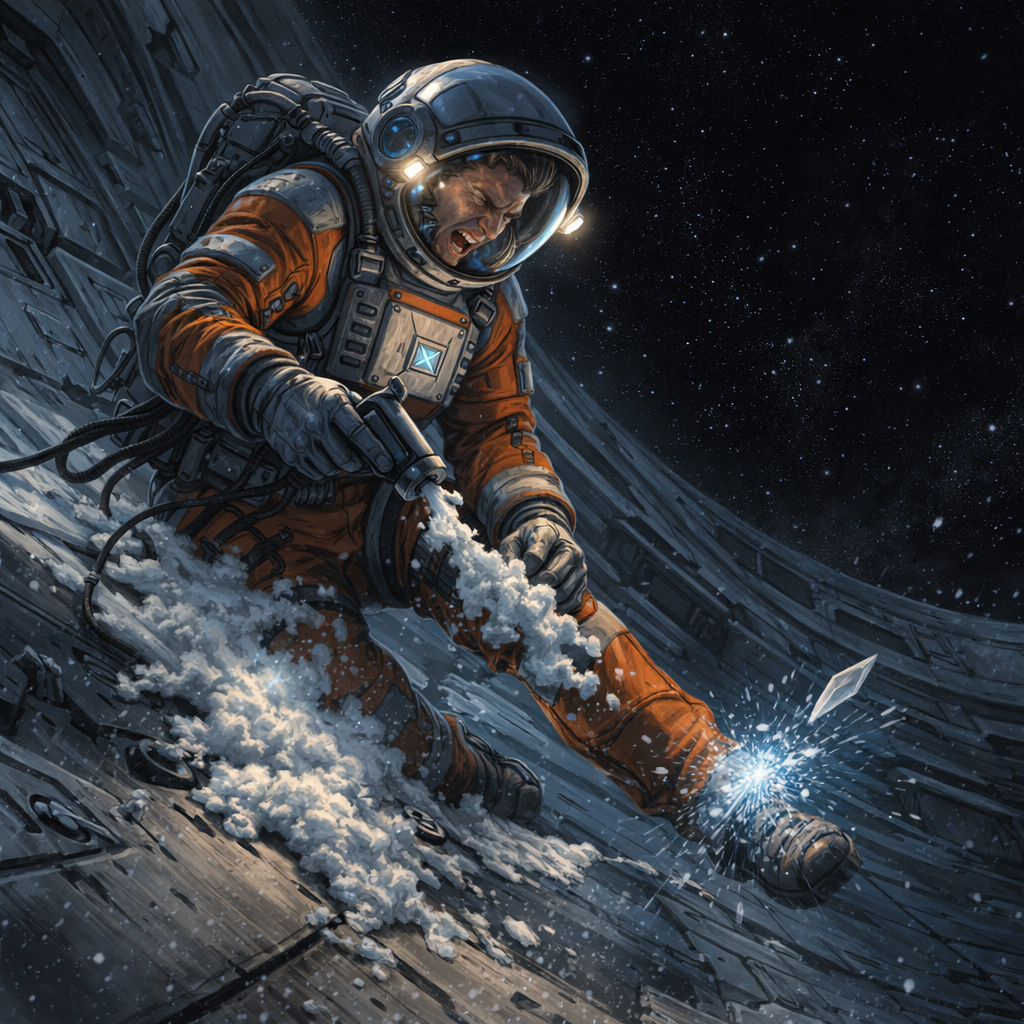 План был прост: догнать и либо пересадить, либо развернуть. Станция приближалась. Макару пришло в голову, что он ещё не видел её полностью собранной… И тут в эфир ворвался спокойный голос Вики.