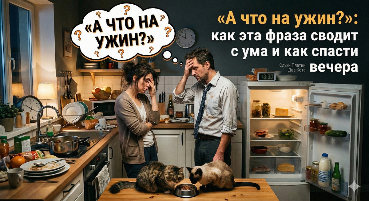 Знаете ли вы, какой вопрос в современной семейной жизни по праву заслуживает звания самого изощренного, выматывающего и жестокого психологического испытания? Это вовсе не сакраментальное «Где мы проведем отпуск?» и даже не подозрительное «А кто тебе только что написал?». Самый страшный вопрос звучит совершенно буднично, невинно и повторяется с пугающей, неотвратимой регулярностью каждый божий день примерно с 17:00 до 19:00.