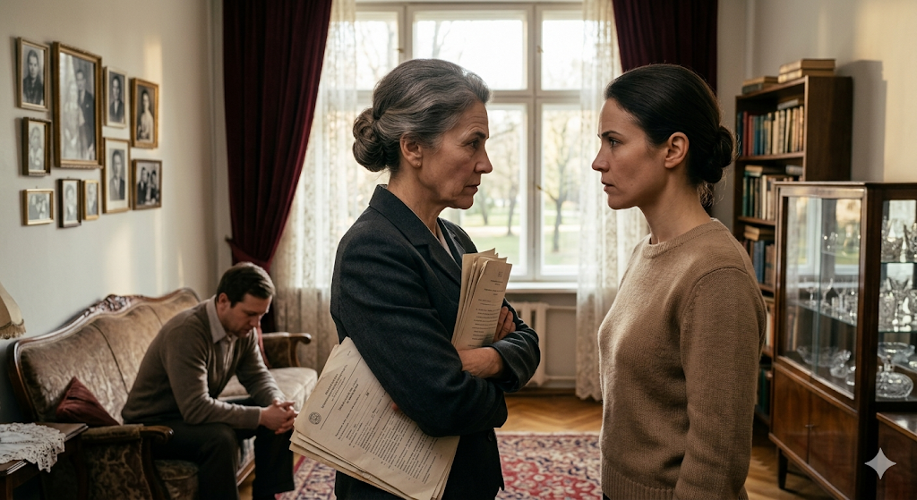 На следующий день они приехали к свекрови. Трёхкомнатная квартира в сталинском доме встретила их запахом хвойного освежителя и идеальной, музейной чистотой. Галина Фёдоровна сидела в кресле как королева на троне, одетая в строгий тёмный костюм — траур по мужу она соблюдала безупречно.