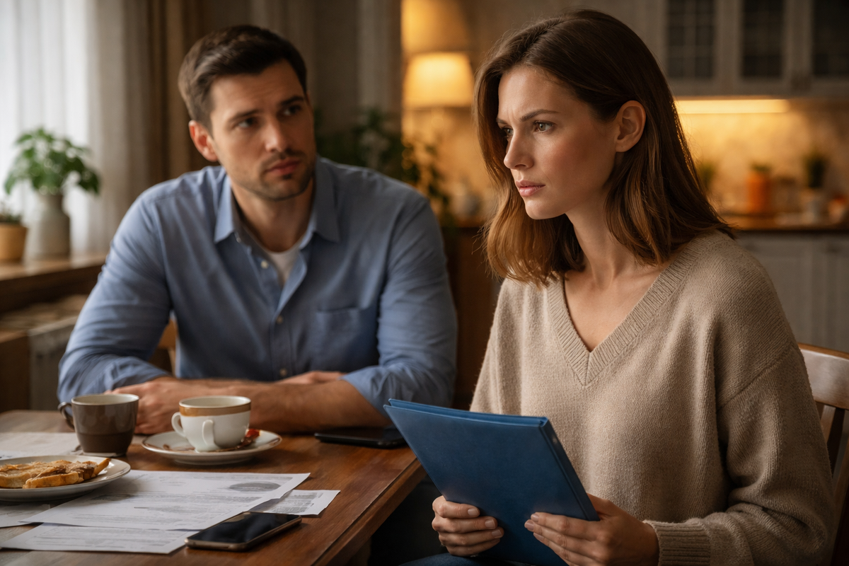 Я села прямо на край кровати, положила папку на колени и долго разглаживала ногтем тот самый угол, пока палец не покраснел. На кухне шумел чайник. Из прихожей тянуло мартовской сыростью. За стеной у соседей работал телевизор. А у меня на коленях лежала бумага, из которой вдруг стало видно сразу многое: кто в этом доме с кем живёт, кто кому что говорит и кто кого давно считает лишним.