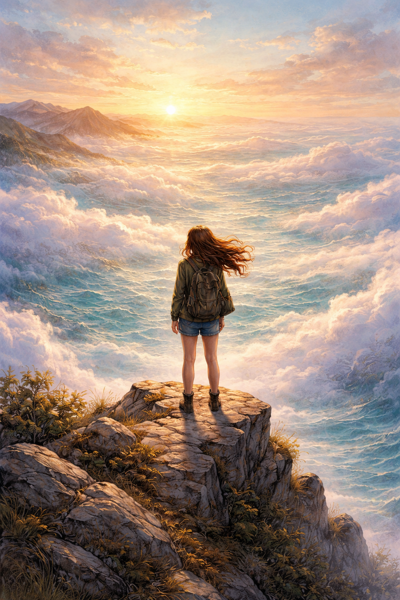 Вид с этой горы и правда был завораживающий до мурашек. Вокруг, на сколько хватало взгляда ползали неспешные облака, пахло нагретыми на солнце камнями и пряной травой. Её спутник тоже любовался просторами и жмурился как кот.