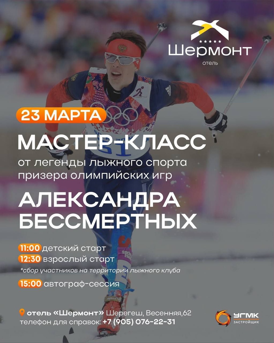 23 марта на территории пятизвёздочного отеля «Шермонт» в Шерегеше пройдёт мастер-класс по беговым лыжам от Олимпийского чемпиона