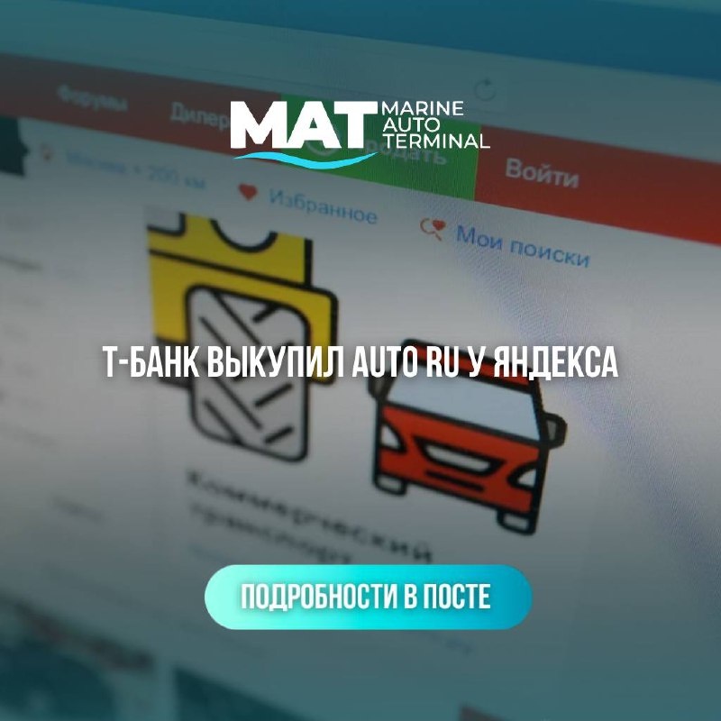 ₽ Крупная сделка на рынке авто-сервисов: Auto.ru переходит от Яндекс к Т-Технологии. 📊 Детали: • сумма сделки - 35 млрд ₽ • закрытие ожидается во 2 квартале 2026 года 🚗 Факт: Auto.ru - один из ключевых игроков рынка онлайн-продажи автомобилей в России, поэтому смена владельца может повлиять на развитие сервисов, конкуренцию и рынок в целом. "Морской Авто Терминал" - ваш надежный партнер в мире импорта и экспорта грузов/ автомобилей/спецтехники из КНР! -Поможем с проверенными экспортерами в КНР/Японии/Кореи. -Оформим транзит в страны СНГ! 🆔 marine.at@mail.ru 🌐 https://marineat.ru 📞 8(800)700 75-84 Наши социальные сети: 📷IG | 💬VK | 📞WA