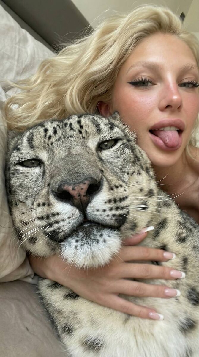 🐱 ИНСТРУКЦИЯ для создания такого фото 📸: ✨ отправь свое фото в бот https://t.me/aibudka_bot (лицо чётко видно) ✨ выбери Nano Banana Pro (обязательно поставь ползунок на pro для топ результата) ✨ параметры: 2K, 9:16 (или любые) ✨ скопируй и вставь этот промпт: Фотореалистичное фото 3:4, фото в движении, селфи, снято на фронтальную камеру, качество как у iPhone — Ракурс строго снизу вверх, очень крупный план. Под углом ракурс 40 градусов. На переднем плане — лежит взрослый барс, занимающий большую часть кадра. Его морда максимально близко к камере, шерсть детально прорисована: чёткие чёрные розетки, видна текстура короткой густой шерсти. Глаза полузакрыты, взгляд расслабленный, сонный, дыхание спокойное, слегка приоткрытая пасть. Усы мягко изгибаются, нос влажный, живой. На втором плане за барсом — молодая девушка, прижавшаяся к морде барса и обнимающая его за шею. Внешность девушки: длинные густые волосы, часть убрана за ухо, остальные небрежно рассыпаны по подушке и плечам; выраз