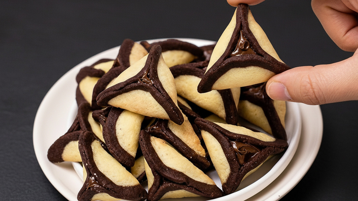 Когда обычное печенье надоедает, на сцену выходит этот рецепт. Двухцветные треугольники с тягучей шоколадной начинкой внутри — это идеальный баланс эстетики и вкуса. На первый взгляд кажется, что это сложно, но на самом деле весь секрет кроется в правильной последовательности и правильном охлаждении теста. Такое печенье станет главным украшением любого чаепития. Для светлого теста нам понадобится 350 г муки, 30 г кукурузного крахмала (он сделает текстуру невероятно нежной), 80 г сахарной пудры и 200 г холодного сливочного масла. Перетираем всё это в крошку, добавляем 2 желтка и ваниль. Как только тесто собралось в комок — стоп, долго месить не нужно. Формируем из него плотный рулет, заворачиваем в пленку и отправляем в холодильник на полчаса. Шоколадное тесто готовим по тому же принципу, добавив 20 г качественного какао. Когда время вышло, раскатываем шоколадное тесто в тонкий пласт. Достаем ванильный рулет, кладем его на край шоколадного слоя и плотно оборачиваем. Теперь нарезаем полу