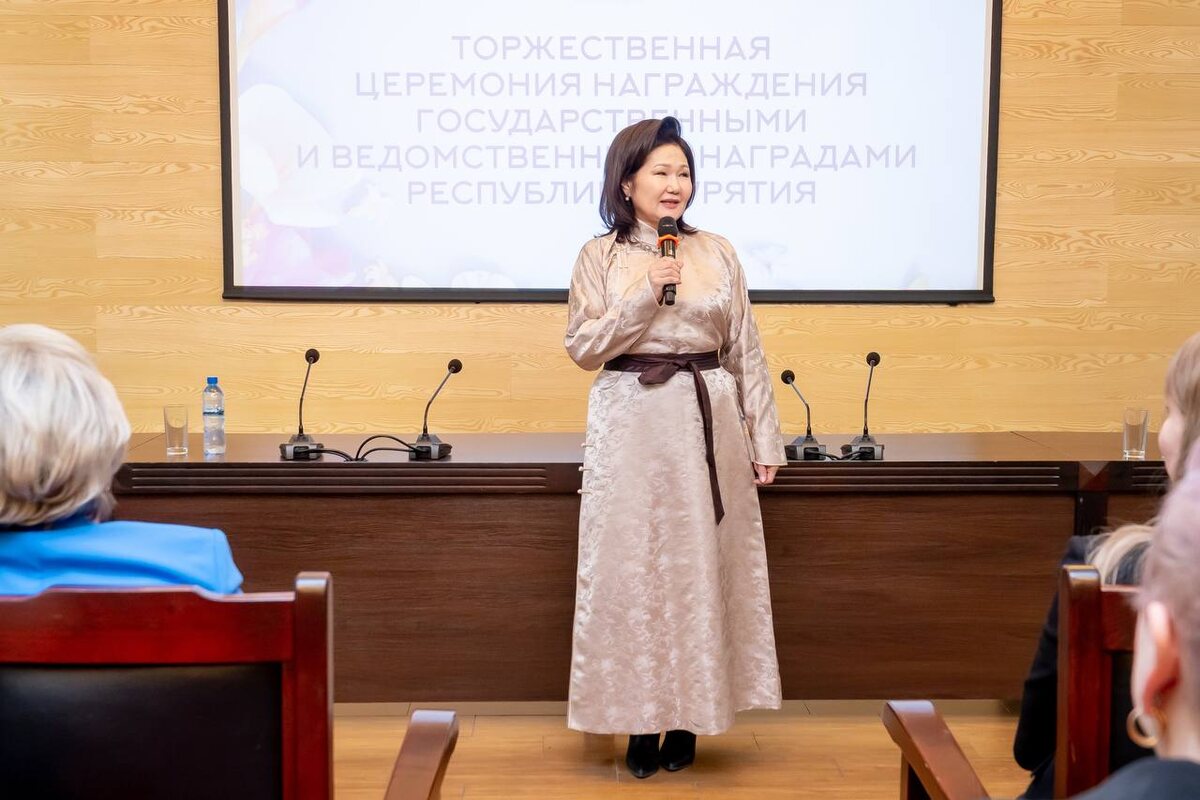 Фоторепортаж: https://vk.ru/album-67294287_309306512 19 марта, в рамках Второго форума менеджеров культуры в Национальной библиотеке прошла торжественная церемония награждения государственными и ведомственными наградами Республики Бурятия и лидеров культуры по итогам 2025 года. Прошедший год стал особенным для всей страны: масштабные мероприятия, посвящённые 80-летию Победы в Великой Отечественной войне и Году защитника Отечества, прошли с размахом. Эти две темы стали центральными в общем плане мероприятий в сфере культуры. И в успешном проведении этих и других событий во многом заслуга именно деятелей культуры и искусства, работников культурно-досуговых учреждений и сотрудников министерства. - Я вас всех рада приветствовать накануне нашего профессионального праздника - Дня работника культуры. Я вас поздравляю, желаю творческих успехов, мирного труда, счастья и конечно же, процветания всей нашей отрасли, - сказала министр культуры Бурятии Соелма Дагаева. Список награжденных вы мож