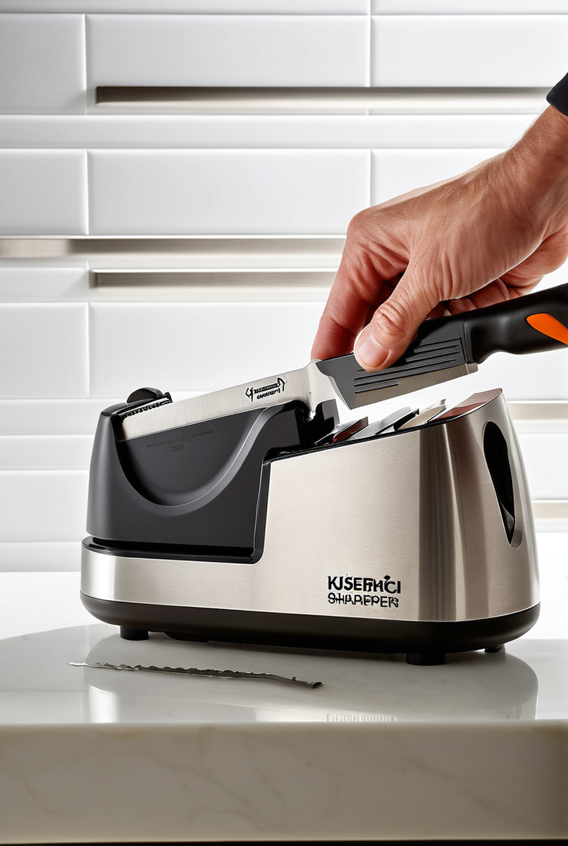 Электроточилка – это компактный электрический станок для заточки, который сделает ваш кухонный нож идеально острым дома. Сердцем прибора являются вращающиеся абразивные диски. Процесс максимально прост: вы помещаете лезвие в специальные пазы — направляющие для клинка. Они удерживают нож под заранее заданным, фиксированным углом. Такой подход гарантирует, что угол заточки будет одинаковым по всей длине лезвия.