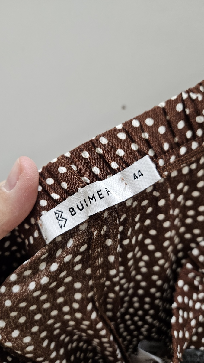 Брюки Bulmer в коричневом оттенке с мелким принтом в горошек. Лёгкая вискозная ткань, свободная посадка и комфортная резинка на талии — идеальны для повседневных образов и тёплого времени. Смотрятся непринуждённо и стильно.
