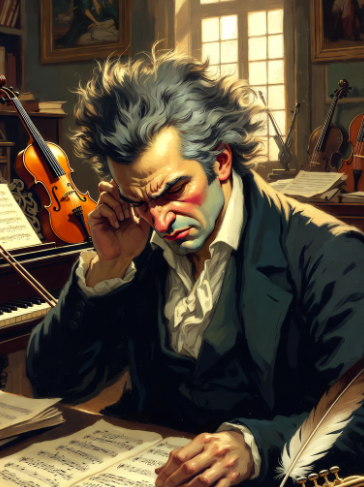Людвиг ван Бетховен — один из величайших композиторов в истории музыки, представитель венской классической школы. Он родился в 1770 году в Бонне и стал ключевой фигурой перехода от классицизма к романтизму. Несмотря на прогрессирующую глухоту, Бетховен создал выдающиеся произведения, включая Девятую симфонию с хором «Ода к радости», фортепианные сонаты (например, «Лунная соната») и множество камерных произведений. Его музыка отличается эмоциональной глубиной, драматизмом и новаторством. Бетховен оказал огромное влияние на последующих композиторов и остаётся символом силы человеческого духа и творческой гениальности. «Людвиг ван Бетховен — человек, который победил тишину.