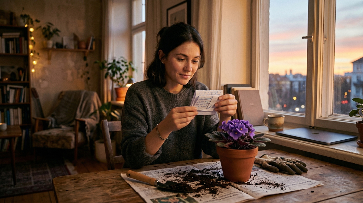 Я купила фиалку в субботу, и это было самое глупое решение за весь март. Просто шла мимо цветочного на углу Ткацкой, увидела в витрине лиловые лепестки и зашла. Не потому что любила цветы. А потому что в квартире было тихо. Очень тихо. Полтора года тишины, с тех пор как я съехала от мамы в эту однушку на третьем этаже панельного дома, где окна выходили на юго-запад и по вечерам солнце садилось прямо в монитор.