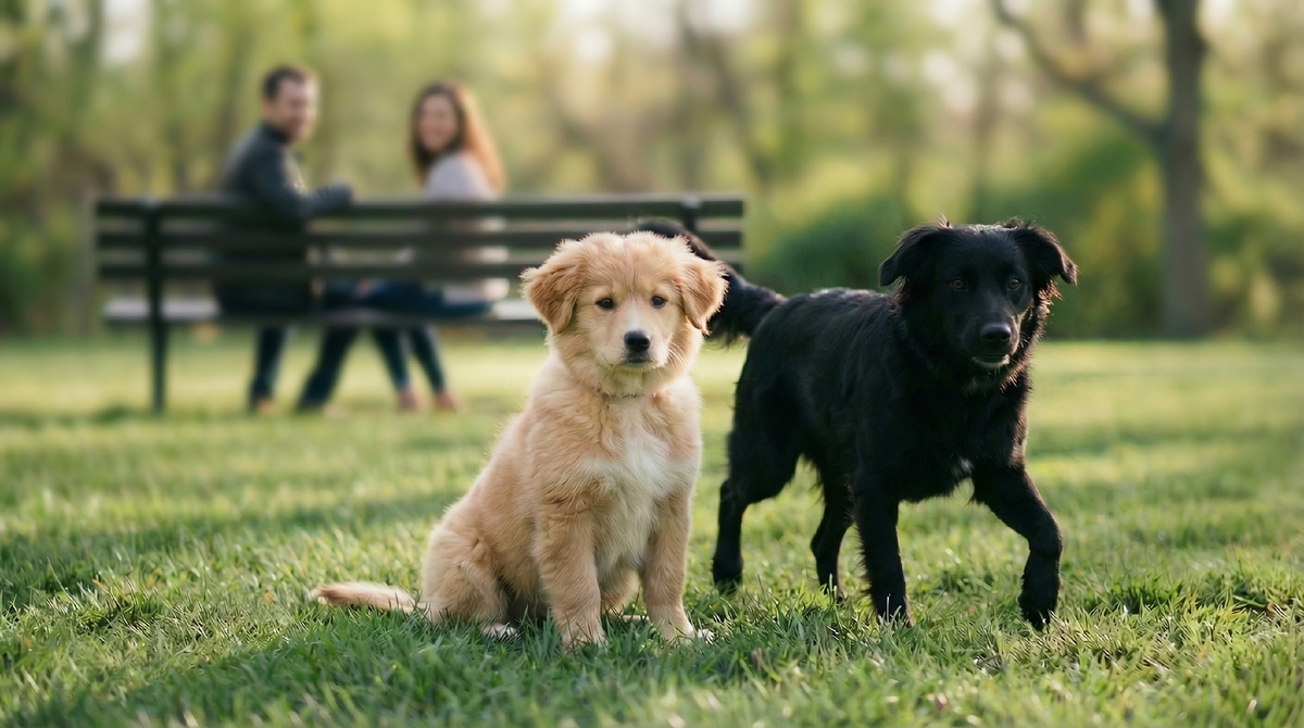 Шанс подбежал, плюхнулся рядом с Малышом. Чёрный и песочный, две пары глаз - смотрели на хозяев.