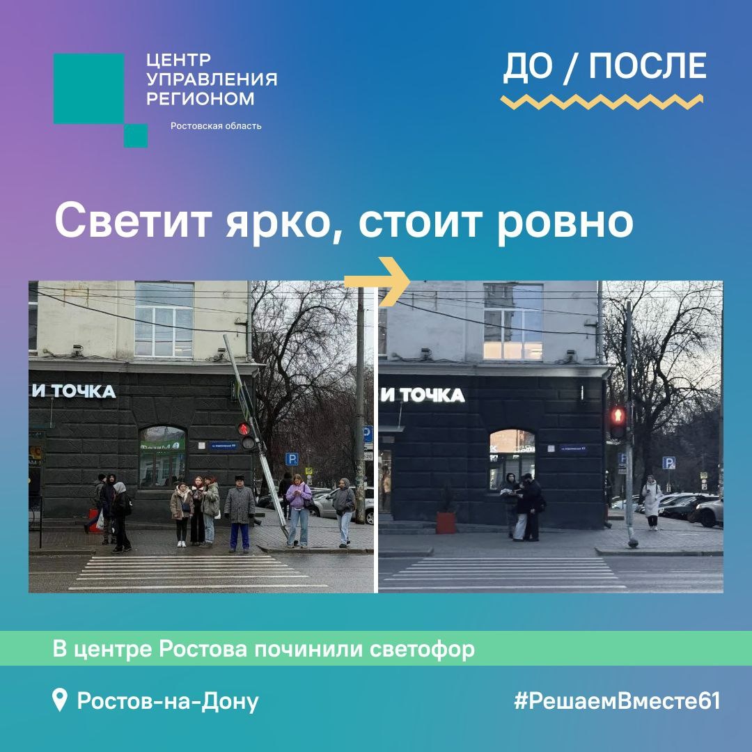 в подборке! 🚦В самом центре Ростова-на-Дону - на перекрестке проспекта Буденновского и улицы Текучева - опасно наклонился светофор, о чем сообщили горожане в соцсетях. Сообщение передано в работу и решено, теперь светофор снова в норме! 🏛Ростовчане в социальных сетях рассказали о разрушенном плиточном покрытии тротуара у социально значимого объекта — Музея истории города (улица Шаумяна, 65). Вопрос взяли на контроль, плитку оперативно восстановили. 🚌Жители Родниковского сельского поселения Кагальницкого района пожаловались на плохое состояние остановки школьного автобуса в хуторе Раково-Таврическом. Проблема решена, остановочный пункт отремонтирован. #цур61 #решаемвместе61 #кейсы61 #Ростовскаяобласть
