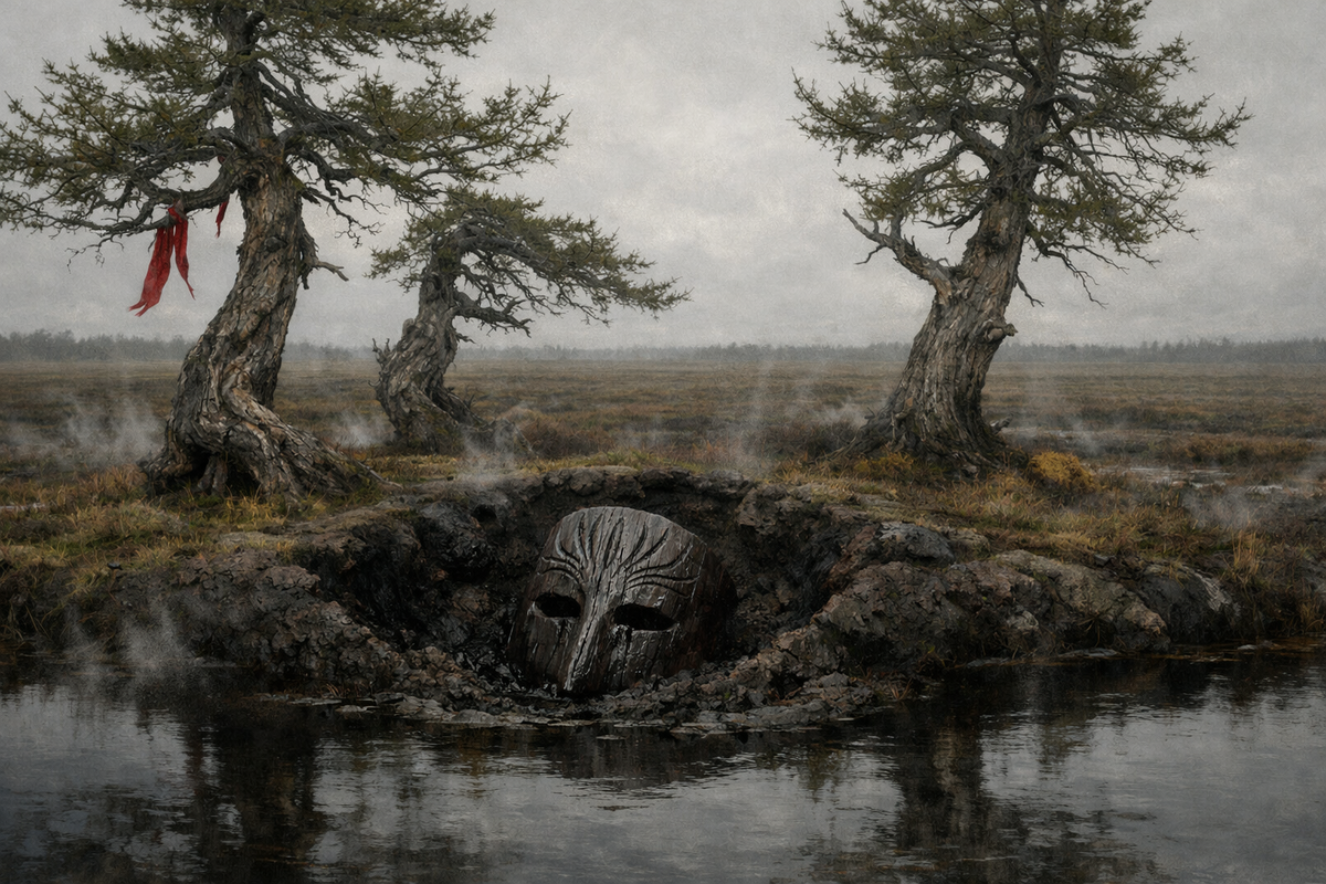 Мы вернулись к святилищу за полдня. Савельев положил маски обратно в яму, присыпал землёй, постоял минуту с закрытыми глазами. Потом повернулся и пошёл.