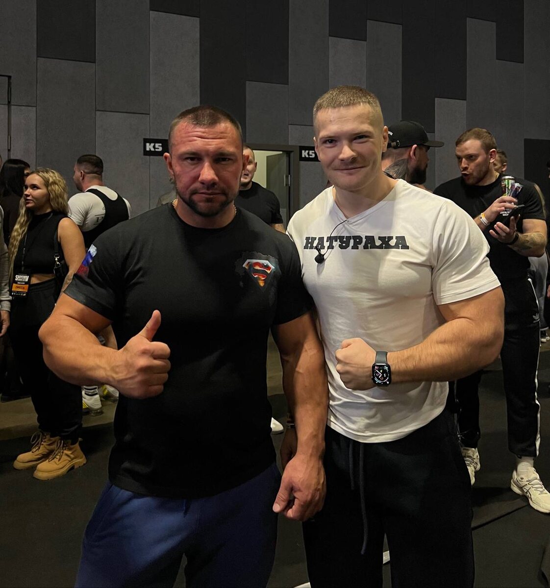 ☝️ 💭 Даже для этого нашел фотку с Андреем Сапожонковым, его лучший жим 280 кг в 93 категории и 260 в 83 категории. А в чистую его результат в 83 - 235, вот и думайте. 🏥 Так вот, так как я до сих пор восстанавливаю локти, всеми возможными легальными способами, то параллельно о себе дает знать левое травмированное годом ранее плечо, пока держимся. 💪🏻И так, вчера жал + бицепс: 1. Жим лёжа без опор: 20х50, 60х15, 85х6, 110х6, 130х4, 140х3, 145/3х3, 140/2х3, 140х5, 132,5х6, 125х8. Объемная и самая результативная тренировка после травмы. 2. Брусья, отжимания без веса: 25/20/15/15. Комфортно. 3. Бицепс с прямой штангой: 50/3х10. Доволен, следующий цикл жим классический будет, с ногами 🦿 😵💫P.S. сумма жима на фото - 480 кг на двоих 🔥 #моятренировка #моятренировка39