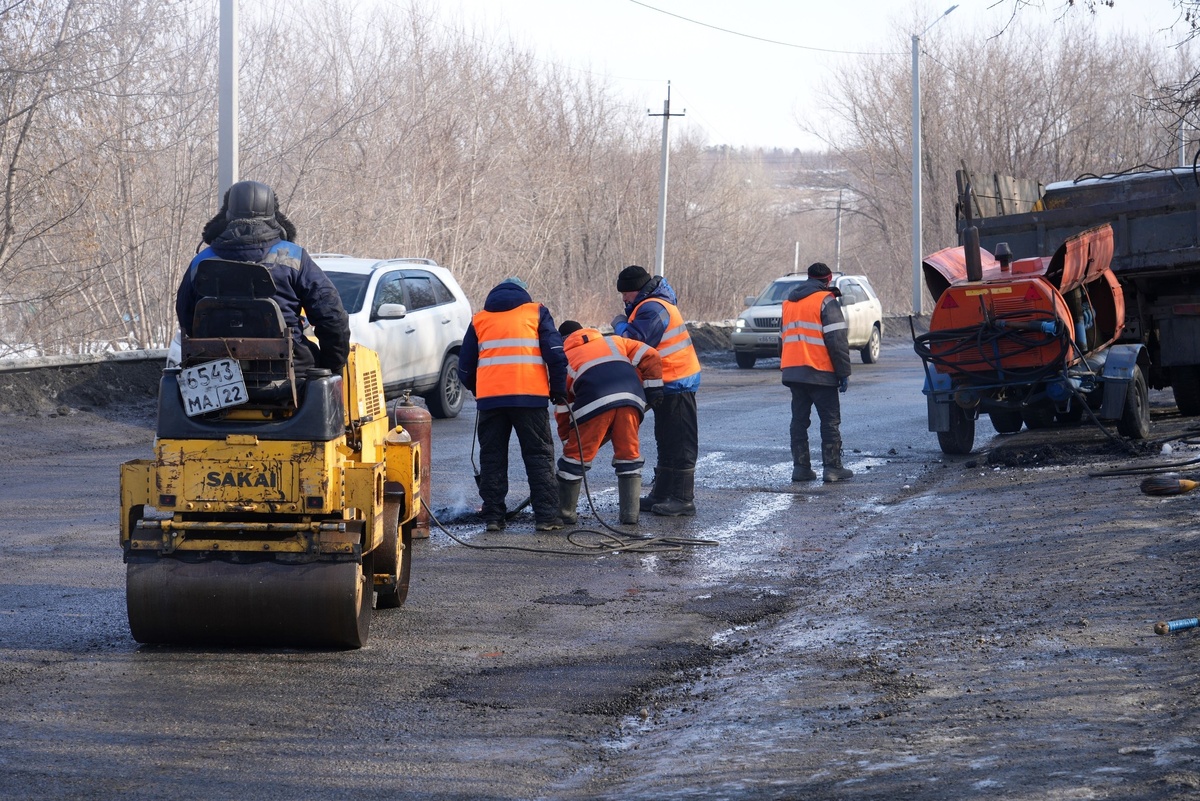 В Бийске приступили к ямочному ремонту методом холодного асфальтирования