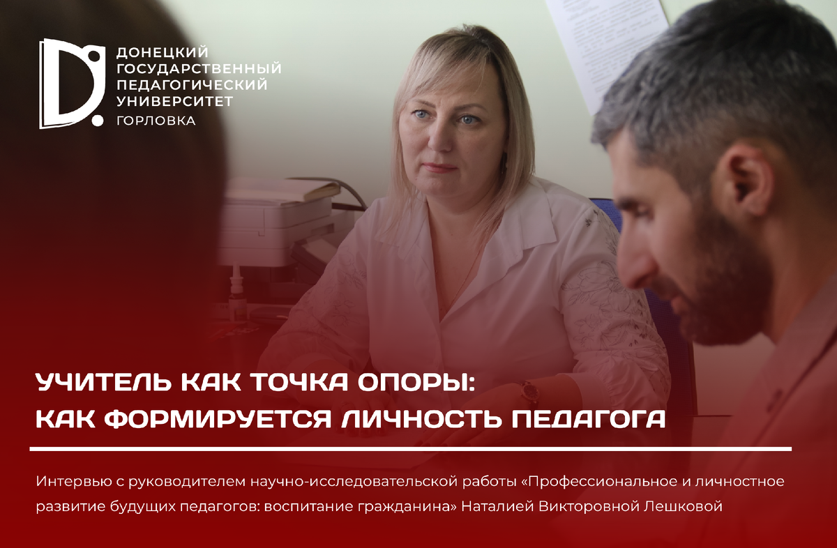 В современной образовательной повестке, формируемой при участии Министерства просвещения Российской Федерации, всё чаще обсуждается вопрос качества подготовки педагогов и всё реже он сводится к содержанию учебных дисциплин. Разговор смещается в сторону личности учителя: его ценностей, гражданской позиции, способности влиять на формирование человека. Именно в этом контексте в Донецком государственном педагогическом университете им. В. Шаталова было проведено исследование, посвящённое взаимосвязи профессионального и личностного развития будущих педагогов. О том, почему сегодня невозможно говорить о подготовке учителя вне воспитательной повестки и как меняется сама логика педагогического образования, рассказала руководитель проекта, кандидат филологических наук Наталия Викторовна Лешкова. Пресс-служба: Если говорить честно: в какой момент становится очевидно, что профессиональных навыков для учителя недостаточно? Наталия Лешкова: Это становится очевидно в реальной педагогической практике.