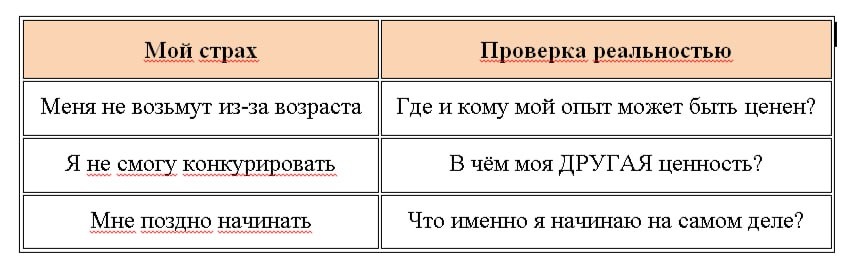 : ✅ Заполните таблицу:☝️ Ответьте честно на вопросы. И вы увидите: 💯 Ваши страхи - это не факты. Это ГИПОТЕЗЫ, которые вы не проверяли. Какой ваш главный страх про возраст? Давайте проверим его фактами. Пишите мне в личку: @olga_shkurikhina