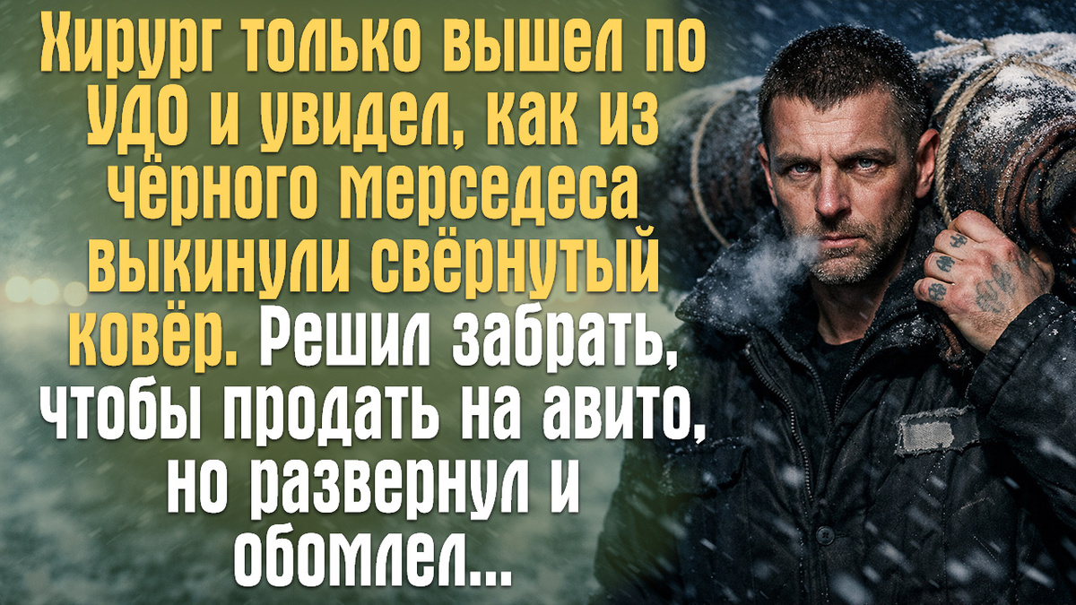 Игорь Чесноков стоял на обочине федеральной трассы в ботинках, которые ему выдали при освобождении, — на размер больше, с чужой стелькой, пахнувшей хозяйственным мылом. В кармане лежали сто рублей одной бумажкой и справка об освобождении, которую он сложил вчетверо, потому что во внутреннем кармане бушлата дыра. Три года назад он входил в операционную в стерильных перчатках, а сегодня стоял на уральском морозе и смотрел на ковёр в канаве с совершенно конкретной мыслью: на «Авито» такой можно толкнуть рублей за пятьсот.
