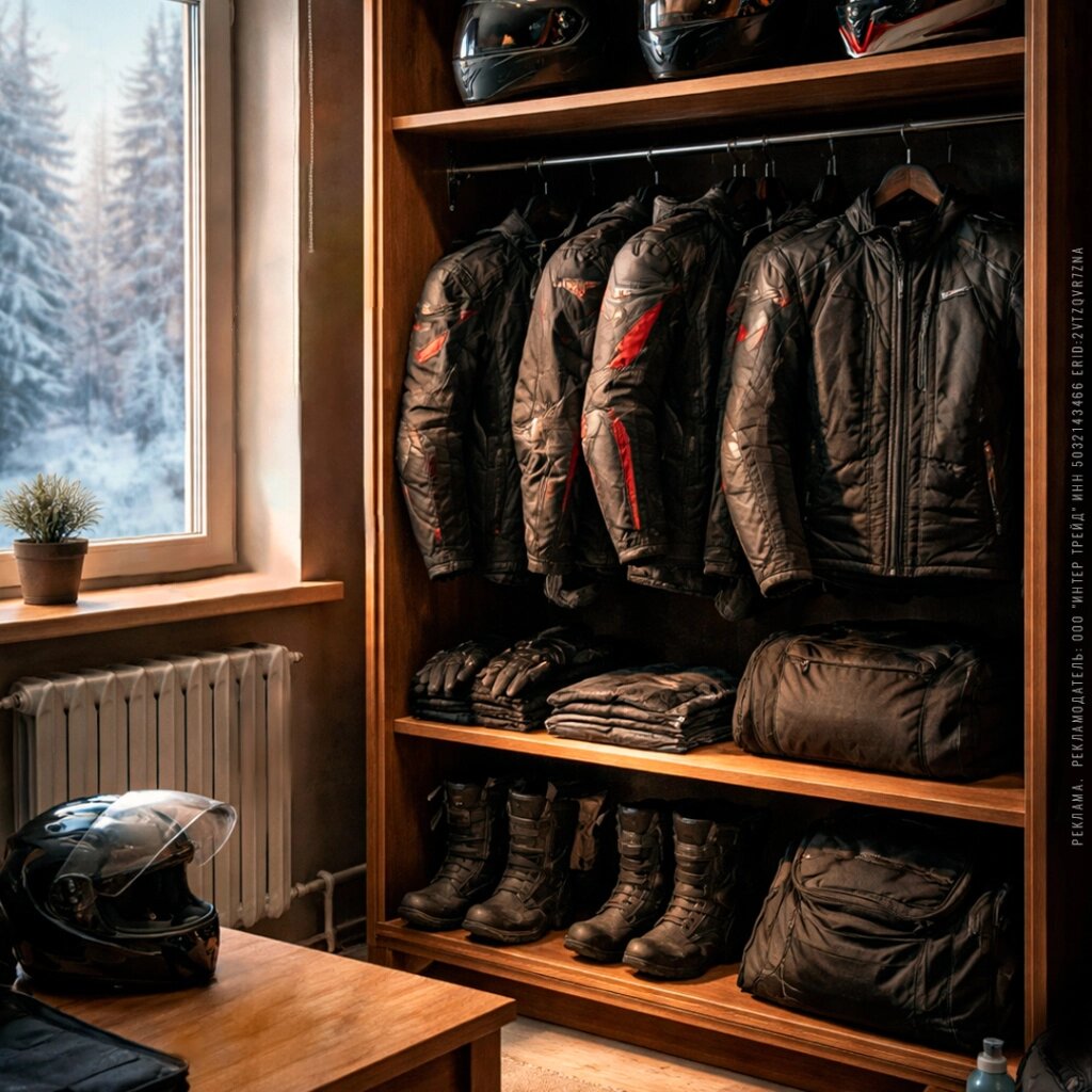 «Закрыть сезон» - это не только помыть мотоцикл, поставить в гараж и отключить плюсовую клемму аккумулятора. Это ещё и убрать всю экипировку на зимнее хранение. Зимнее хранение экипировки нужно производить в чистом виде. Зачем вам прошлогодняя окаменевшая грязь и античные запахи несвежести? Текстиль стираем в соответствии с указаниями на этикетках, желательно с применением жидкого моющего средства, или специальной жидкости для стирки мембранных тканей, к кожаным вещам применяем очиститель и кондиционер для кожи, боты снаружи моем, внутри можно обработать нейтрализатором запахов для обуви, чтобы за зиму «русский дух» выветрился. Если боитесь стирать мембранную подкладку, чтобы она не потеряла водонепроницаемости, не кладите её в стиральную машину, просто протрите с двух сторон намыленной губкой, потом сотрите остатки пены выжатой чистой губкой. Всё постиранное хорошо высушите, чтобы воды внутри не осталось. Вставьте помытые и высушенные защитные вставки, соберите слои одежды вместе и по