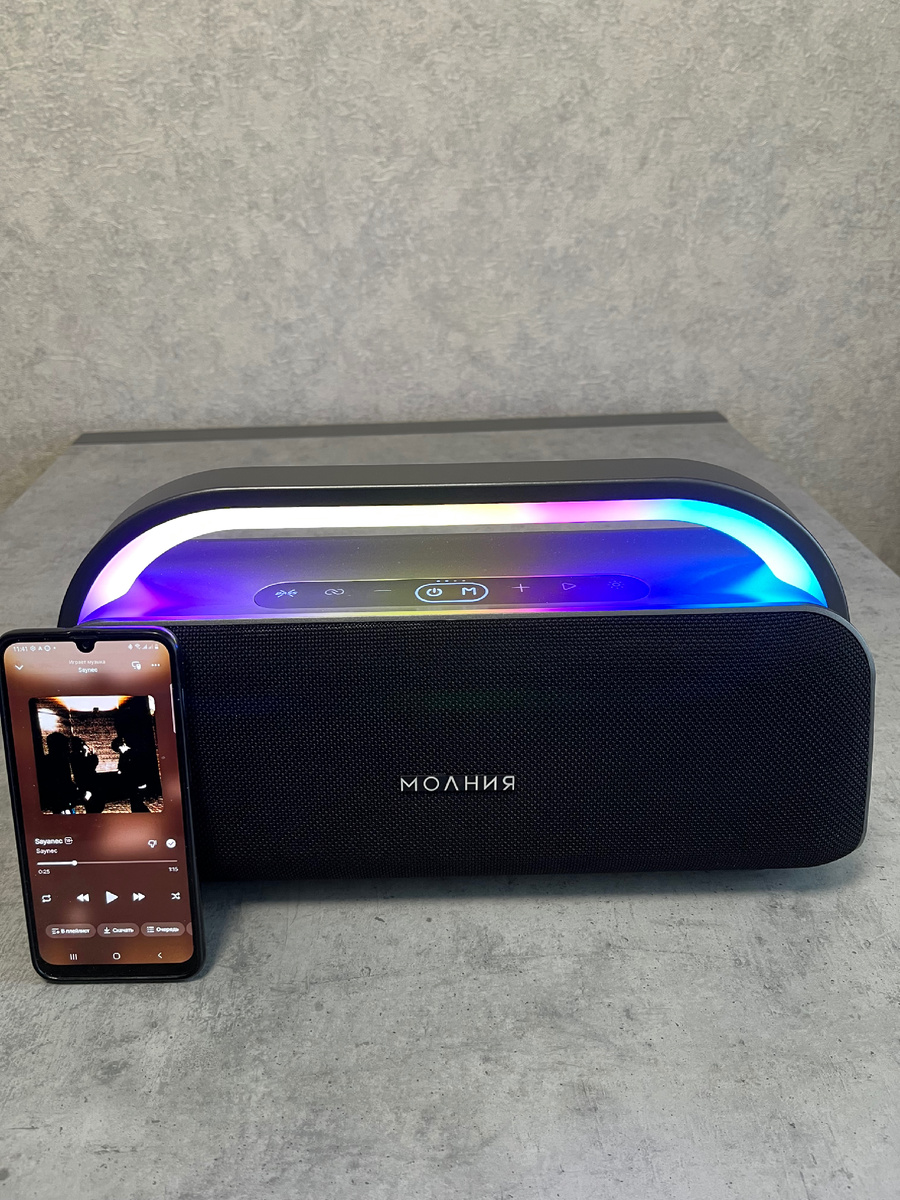 Время работы портативный колонки Молния Кварк при 80% мощности 6 часов!
