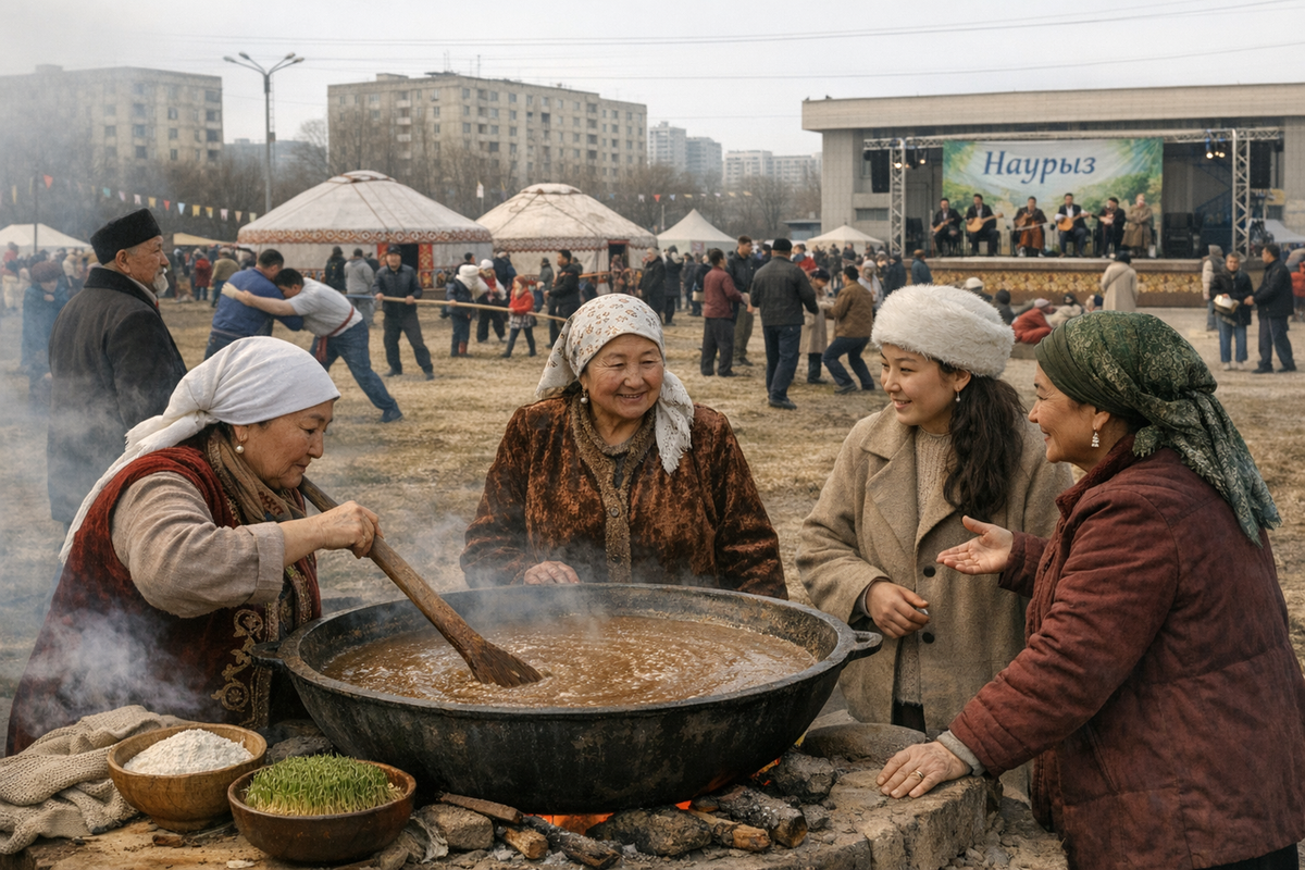Современный Наурыз сочетает в себе несколько уровней традиций. С одной стороны, это архаические элементы — очищение дома, символическое обновление, прощение обид, посадка деревьев. С другой — практики, сформированные в советский период: массовые концерты, участие государственных структур, публичные спортивные мероприятия. Наконец, добавляется третий уровень — современные формы коммерциализации и медийной адаптации. Бренды выпускают тематические коллекции, рестораны предлагают специальные меню, социальные сети генерируют цифровой контент.