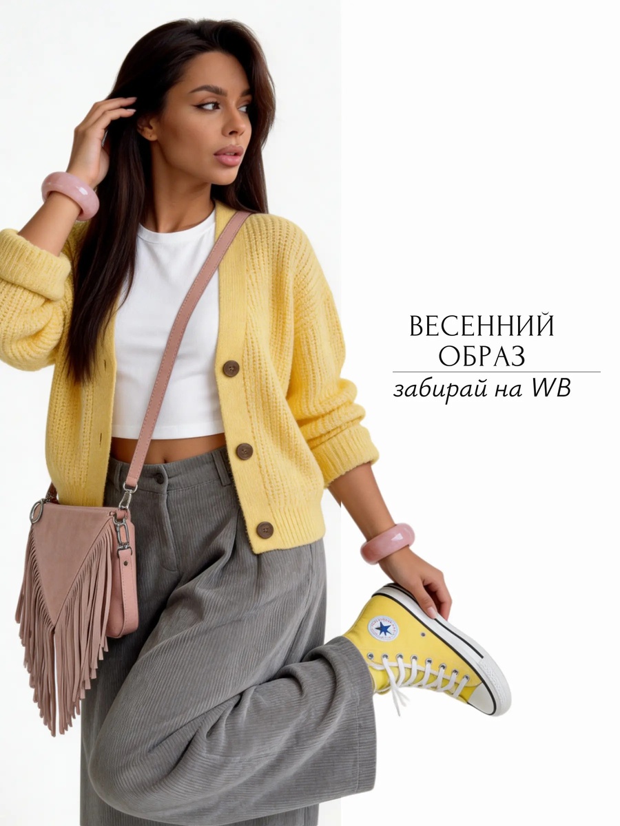 Брюки #755013404 Кардиган 27095416 Футболка 722642939 Кеды 155578258 Сумка 399756074 Сохраняй ✨ Твой личный гид по стилю от NIGINart 🛍️ Ссылка на официальный аккаунт бренда в шапке профиля ✍️ #обзорпокупоквайлдберрис #готовыеобразы #гардеробезошибок