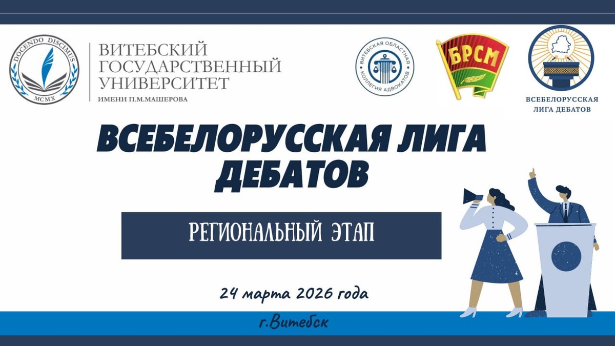 💬24-го марта в ВГУ имени П.М. Машерова состоится региональный этап республиканского конкурса «Всебелорусская лига дебатов».