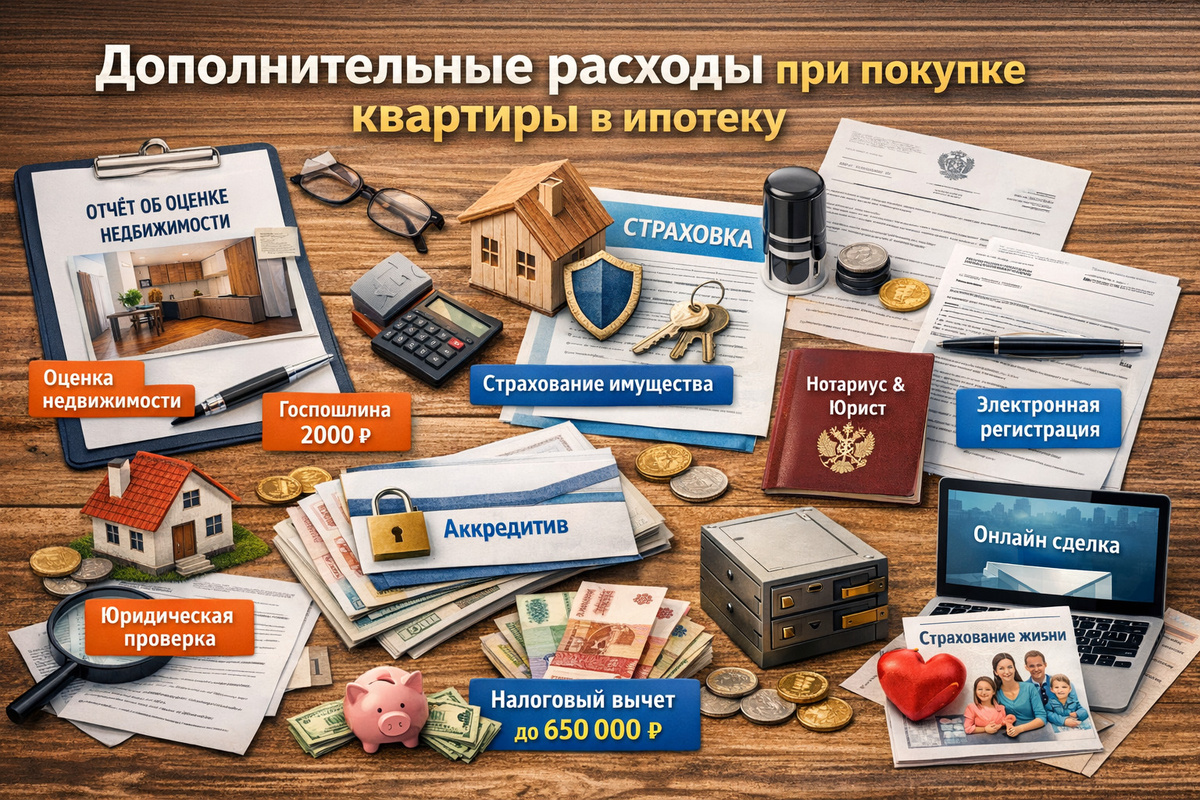 Дополнительные расходы при покупке квартиры в ипотеку в 2026 году: полный разбор затрат и способы экономии. Какие расходы возникают при ипотеке: обязательные платежи, скрытые комиссии, страхование, нотариус, оценка и регистрация. Разбираем, где можно сэкономить и как вернуть деньги через налоговый вычет.