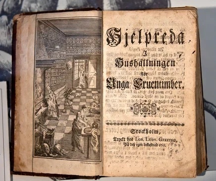 «Hjelpreda i Hushållningen för Unga Fruentimber» («Полезное руководство по ведению домашнего хозяйства для молодых женщин»). Книга была опубликована в 1755 году.