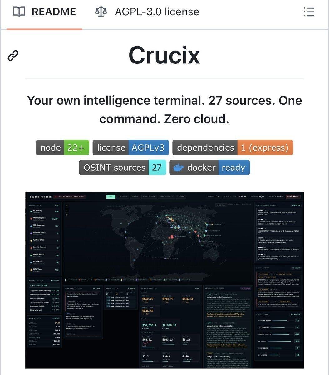 это personal intelligence agent, который 24/7 смотрит за миром и будит вас, только когда происходит что-то значимое. Ваш персональный разведчик данных. Автоматически мониторит ~26 открытых источников и присылает сигналы, когда в мире что-то реально меняется. Собирает данные по ключевым направлениям: • геополитика • экономика • энергетика • социальные тренды • мировые события Всё в одном удобном self-hosted дашборде. Система сама: • следит за источниками • фиксирует изменения • шлёт уведомления только по важным сигналам Больше не нужно читать десятки сайтов вручную. Идеально для: • мониторинга рынков • отслеживания геополитики • раннего обнаружения трендов • анализа новостей Ссылка Telegram: @Age_of_it