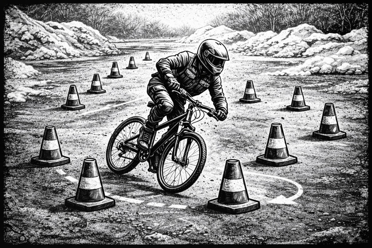 ! Самое главное — не бросаться на дорогу сразу после зимы. • Асфальт ещё холодный • Снег не весь растаял • На дорогах полно песка и грязи Да и просто грязно. Если кто не в моготу терпеть это — можно потренироваться на конусах… на велосипеде 🚴♂️😉 Помните: мотоджимхана — это контроль и удовольствие, а не спешка. 🏁