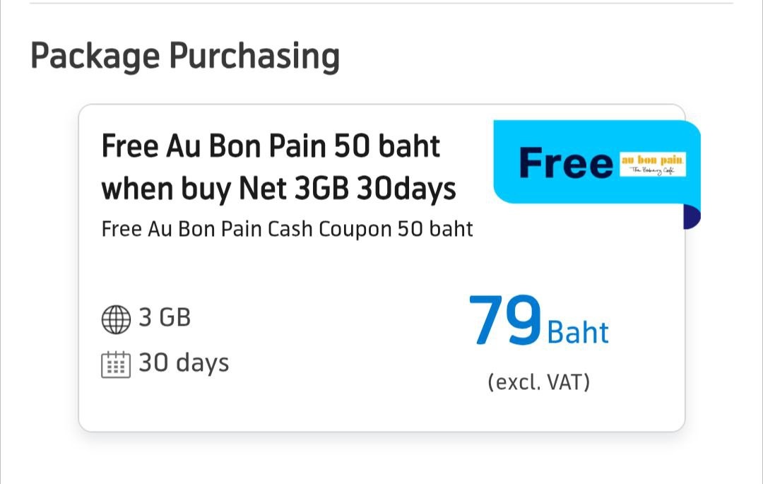 Но скоро понял, что мобильного интернета трачу очень мало. И тогда обнаружил у Дитака вот этот вот тариф с тремя гигами и купоном в булочную. Это самые дешёвые 3 ГБ на месяц. Можно, конечно, купить 1 гигабайт за 63 бата по тарифу My choice. Но это уже будет полное нищебродство. #нищебродские_записки@HiThai