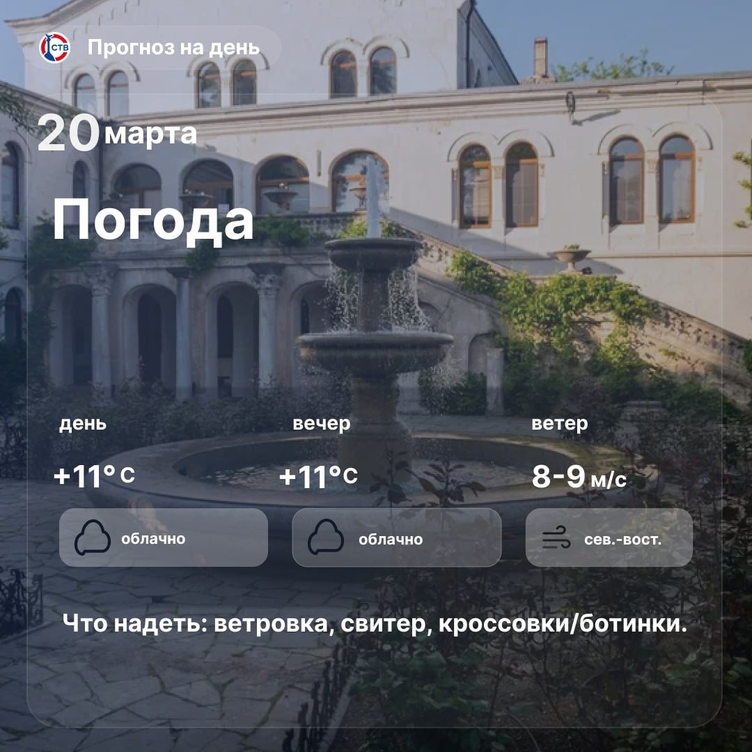 Доброе утро, севастопольцы! День обещает облачную погоду. Температура воздуха до +11℃. Хорошего дня!