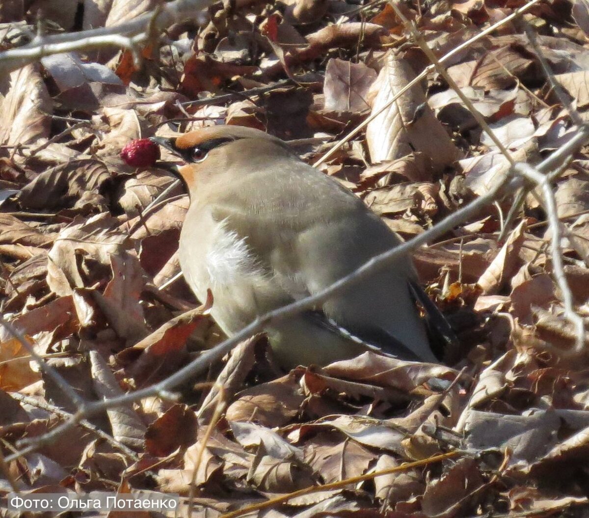 … Фокусник в кадре — амурский свиристель, а красный объект в клюве — ягода боярышника. Амурский свиристель – птица размером со скворца. Очень похож на обыкновенного свиристеля, но на конце хвоста имеется красная, а не жёлтая полоса. Свой фокус свиристель показал сотруднику отдела туризма — Ольге Потаенко на визит-центре «Земли леопарда». Приезжайте в гости, посмотрите на красавца 🐦 Но уже без ягодки 🐆 Здесь «Земля леопарда» / МАХ