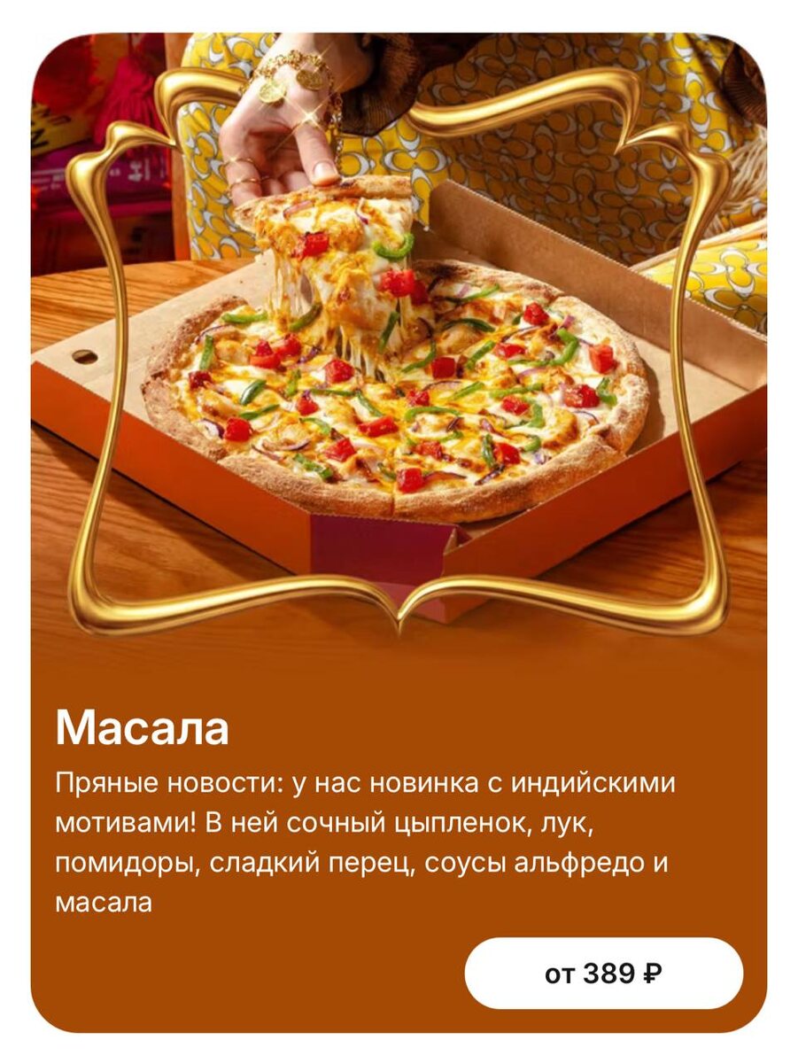 ?💫 В пицце сочный цыпленок, лук, помидоры, перец, соусы альфредо и масала. И Додстер тоже сделали! В нем цыпленок, пряный соус масала, сочные томаты и моцарелла. Скорее пробуйте новинку с индийскими мотивами!😄
