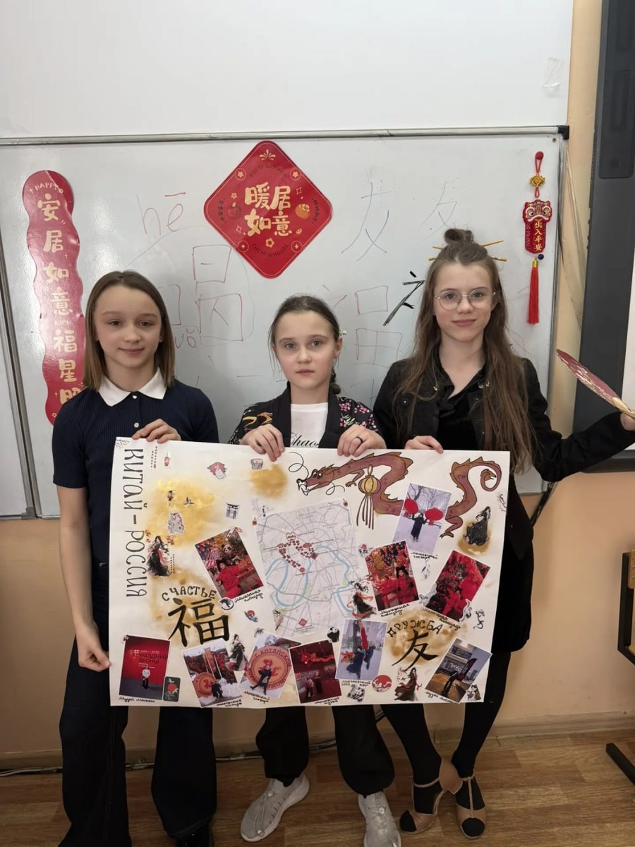 Декада науки в школе 1358 Все исследовательские проекты пятых и шестых классов первого корпуса школы посвящены объединению, сплочению и дружбе. Ученицы 5 «Г» класса выбрали тему проекта «От Москвы до Пекина: новогоднее путешествие в сердце дружбы», чтобы изучить традиции китайского Нового года и понять, как дружба между Россией и Китаем проявляется в повседневной жизни Москвы. Задачи, которые поставили перед собой девочки: — познакомиться с историей и традициями китайского Нового года; — изучить, как развивались отношения между нашими странами; — найти в Москве места, украшенные китайской символикой; — создать карту-путеводитель по этим местам. Юные исследовательницы отправились на прогулку по праздничной столице. Они увидели танцующих драконов на Манежной площади, прошли по Тверской улице под тысячами красных фонариков, научились писать иероглифы «счастье» и «дружба» на мастер-классах в Болотной площади, побывали в Музее Москвы на выставке, посвященной Китайскому новому году. Результа