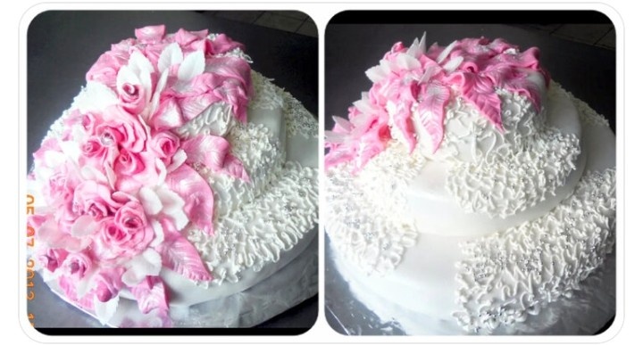 Уже показывала самый первый ярусный торт с мастичными розами, он и сзади и спереди выглядел одинаково плохо. 🤣