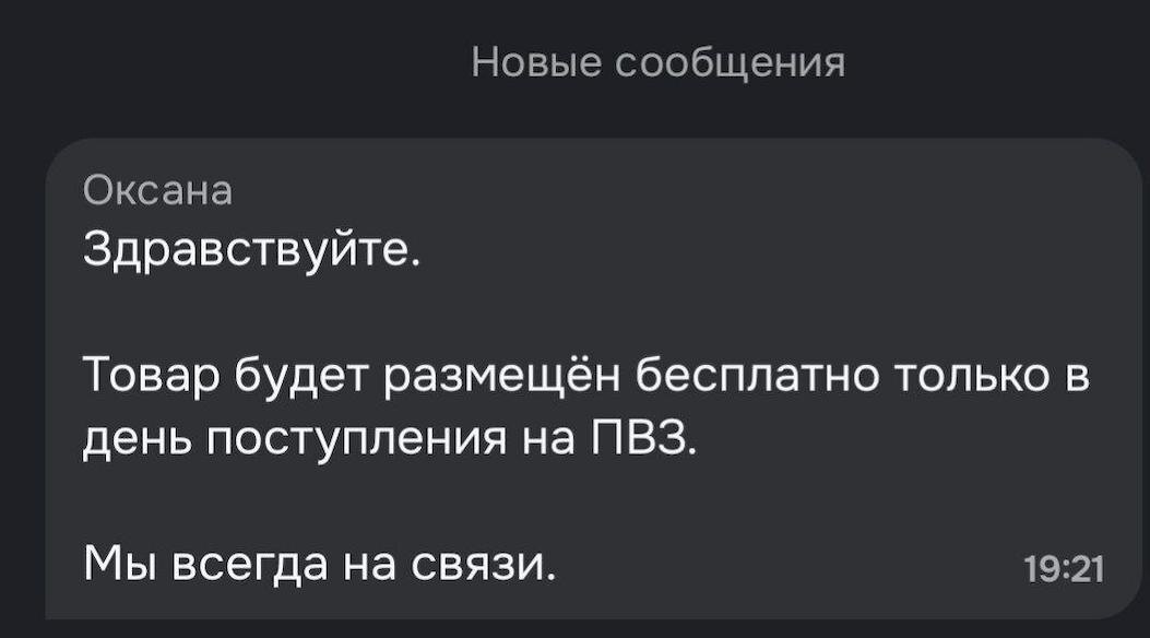 Теперь официально, по словам службы поддержки: с 1 апреля бесплатное размещение — только в день поступления на ПВЗ. По факту это означает 0 бесплатных дней. Приехал товар вечером — на следующий день уже пошла тарификация. Классический кейс: возврат пришёл в воскресенье, в понедельник утром уже начисления. Даже забрать не успел — уже должен. Формально «1 день есть», по факту — нет. Очередное аккуратное переписывание условий в сторону монетизации каждого движения товара. Если у вас плохо прогружаются файлы, все посты также доступны в MAX: https://max.ru/marketplace_biz