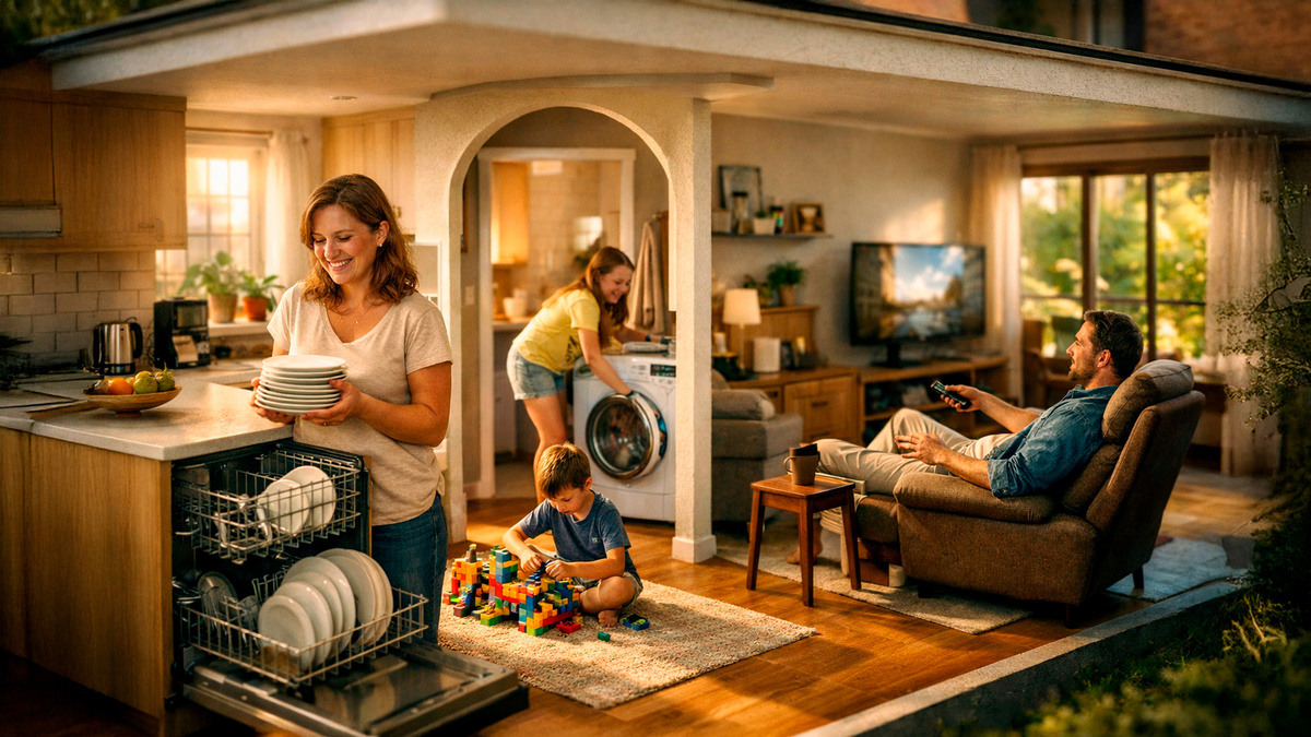 Электрическая стиральная машина вернула людям время, которое раньше уходило на пар, мыло и усталость.