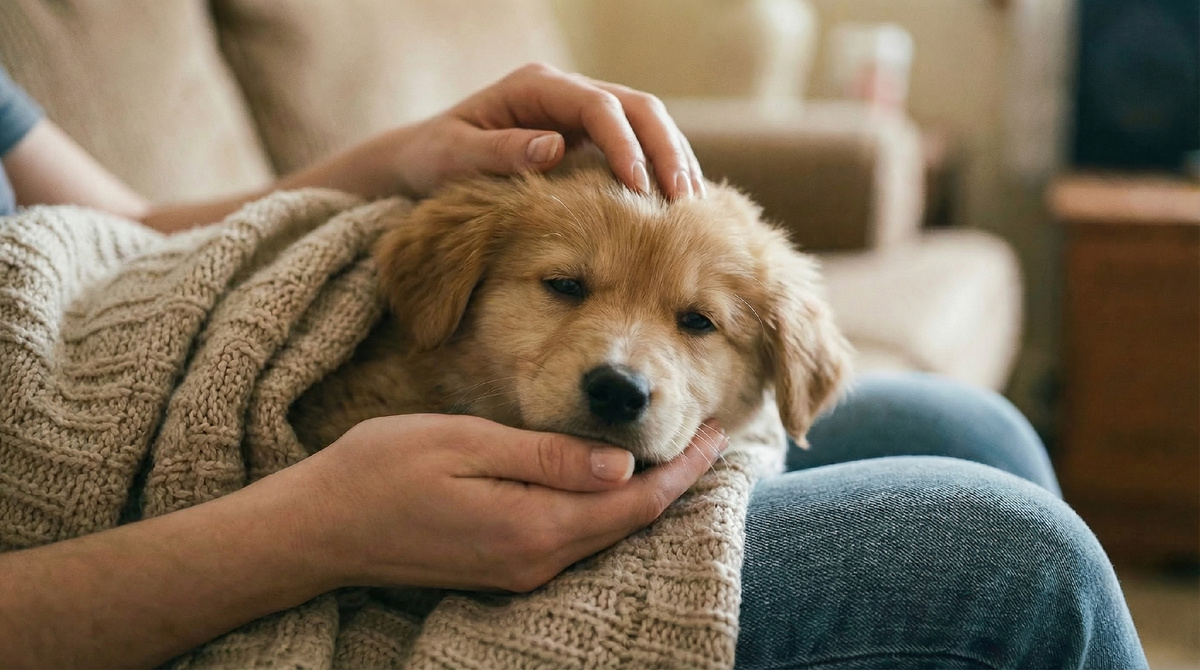 Дома Андрей помог устроить Малыша. Постелили чистый плед, поставили миску с водой рядом.