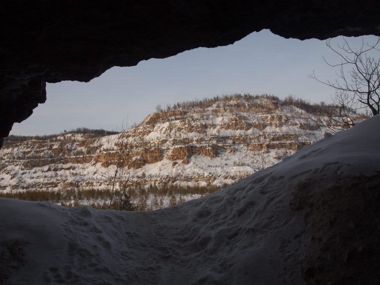 На втором ярусе карьера есть две штольни, в которые народ уже протоптал тропу. Понятно, что здесь также требуются осторожность, соблюдение техники безопасности. Особенно весной, когда камень трескается от разницы температур и не слишком надежен. Но если все делаете по правилам (лучше заходить туда в каске), загляните в неглубокую правую штольню. Увидите потрясающую для наших мест картину: растущие на камнях сосульки-сталагмиты, образованные каплями падающей с потолка воды, и кружевные заиндевелые «розы», сплошь покрывающие своды подземелья. Экскурсанты специально едут за такой красотой на Урал, в знаменитую Кунгурскую ледяную пещеру, а тут — самарский аналог, хотя и значительно меньших размеров, буквально у нас под боком.