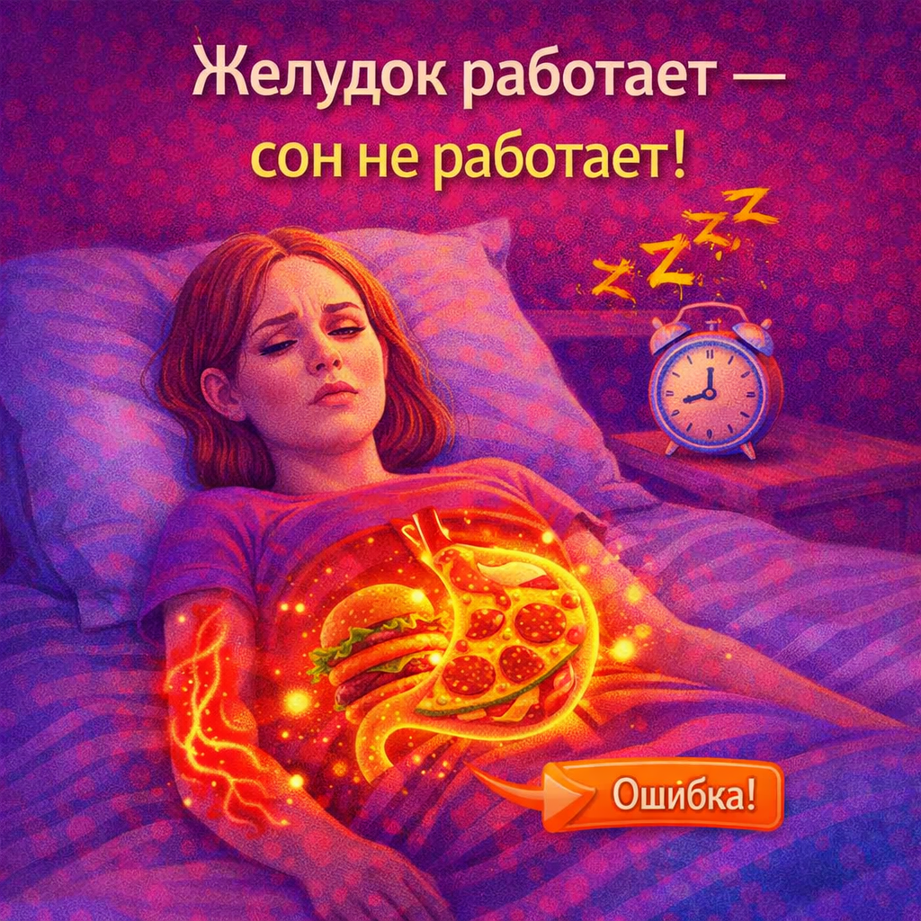 Подруга объяснила просто: «Глубокий сон — это когда организм отключает все системы на минимум и ремонтирует себя. Если желудок занят перевариванием — никакого ремонта не будет».