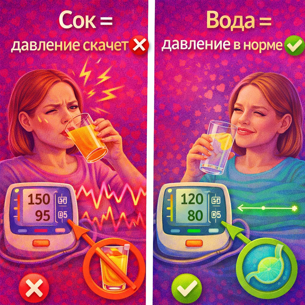 «Люди думают: сок — это полезно. Но для давления это враг. Сахар без клетчатки — это скачки, которые изнашивают сосуды. Хотите витамины — ешьте фрукты целиком. Хотите стабильное давление — забудьте про соки натощак».