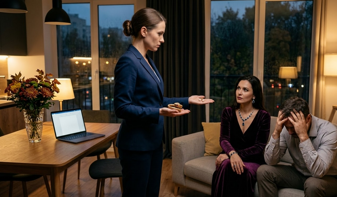 Лена уставилась на подарок, чувствуя, как краска отливает от лица. Змея. Золотая. Изумруды. Все то, что она терпеть не могла.