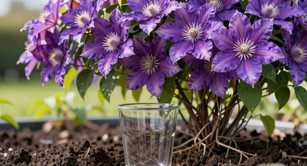 1 стакан в лунку при посадке клематиса — и лиана цветет шапками: никаких увяданий, зимует без проблем