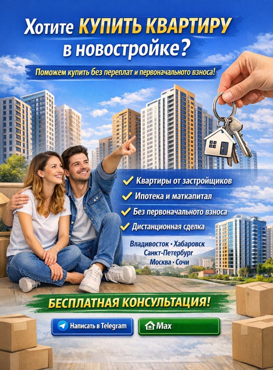 🏡 ХОТИТЕ КУПИТЬ КВАРТИРУ В НОВОСТРОЙКЕ, НО НЕ ЗНАЕТЕ С ЧЕГО НАЧАТЬ? Мы поможем подобрать лучшие квартиры от застройщиков и проведём вас через всю сделку — от выбора до получения ключей! ⭐️Что вы получите, обратившись к нам: ✅Подбор новостроек под ваш бюджет и пожелания ✅Квартиры напрямую от застройщиков — без переплат ✅Помощь в одобрении ипотеки ✅Возможность купить без первоначального взноса или с минимальными вложениями ✅Использование материнского капитала ✅Дистанционная покупка — если вы в другом городе ✅Полное сопровождение сделки 🌍 Подбираем квартиры в новостройках: Владивосток • Артём • Уссурийск • Находка • Хабаровск • Санкт-Петербург • Москва • Краснодар • Сочи 🆓 Наши услуги для покупателей бесплатны — их оплачивают застройщики! 📩 Напишите нам и получите бесплатную консультацию и подборку квартир⬇️ 📞 Связаться с нами: +7 924 264-51-55 (WhatsApp, Telegram, Max) 📲 Наши группы: Max — https://golnk.ru/E8NJW Telegram — https://t.me/ipotekaservis 📍Офис г. Лесозаводск